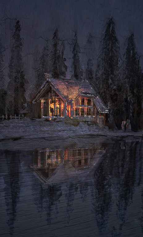 Started in InfinitePainter over christmas, the main focus being a warm complimentary colour and the focus of the detail being the chalet, and just popped in a snowman for a bit of fun. The balance between a vignette contrast was key here.