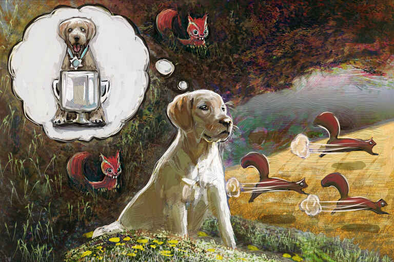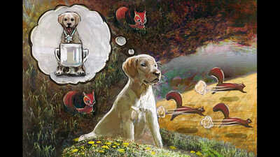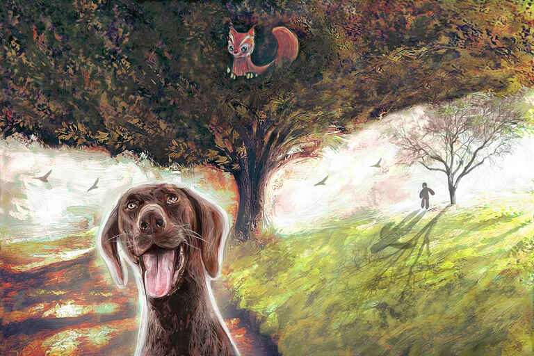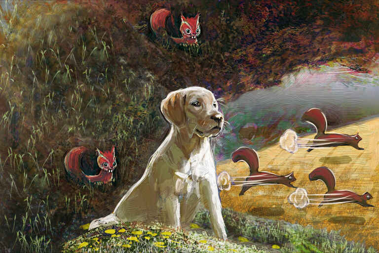 A commission I completed using the power of ArtRage. This had a story of a dog scaring a squirrel and being very proud!!