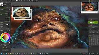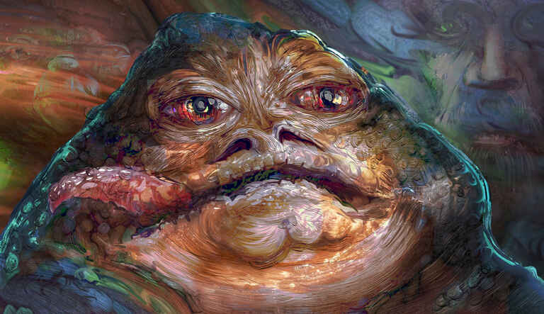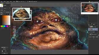 Started in Infinite Painter and I wanted to apply a lot of texture in ArtRage mainly utilising the depth of the Oil Brush to define Jabbas skin. I added a tongue from the original reference and subtly introduced Yoda and Luke into the background. The main enhancement from the reference was adding more of a spotlight on the face and enhancing the saturation.