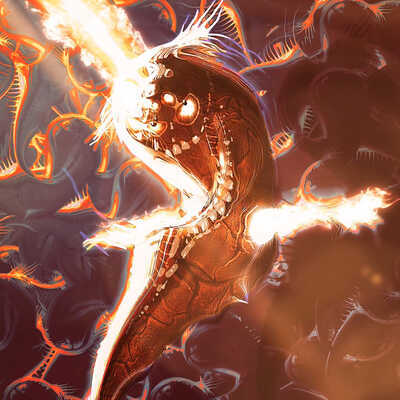 I thought I would have a bit of a go at animating my art using an app on IOS called Werble!, this time a weird floating burning pocket of destruction!!