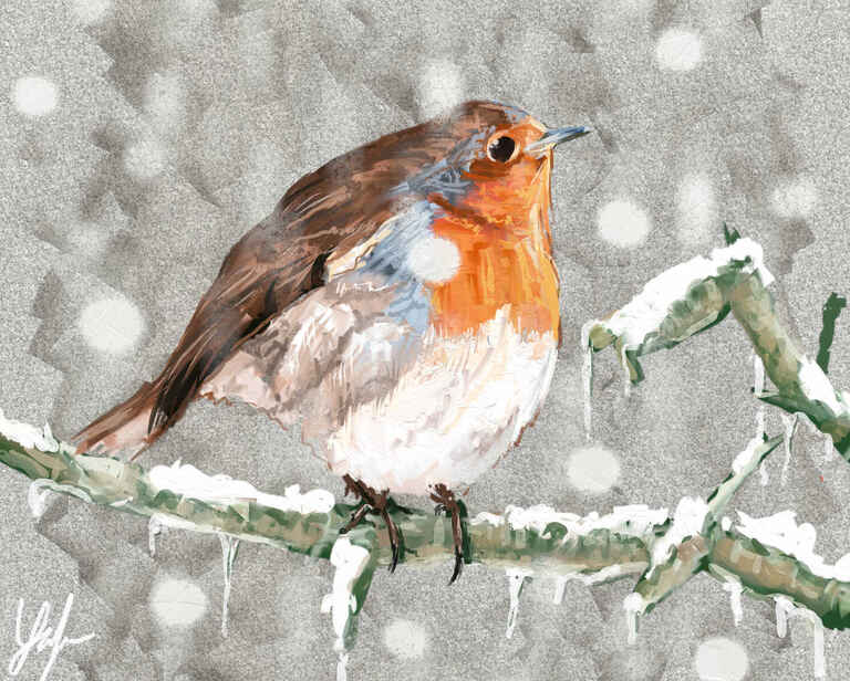 It was Christmas so what better way to celebrate than producing a robin. The idea behind this was to make the style like a christmas card. This one was one of those that came together very quickly in a couple of hours and I quickly decided that it was completed.