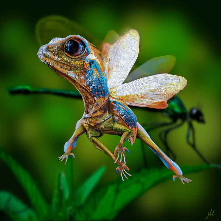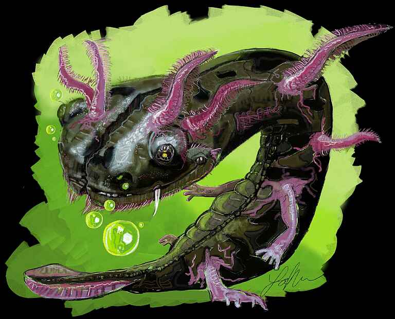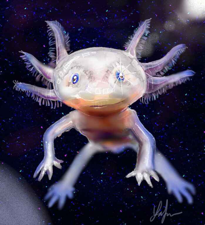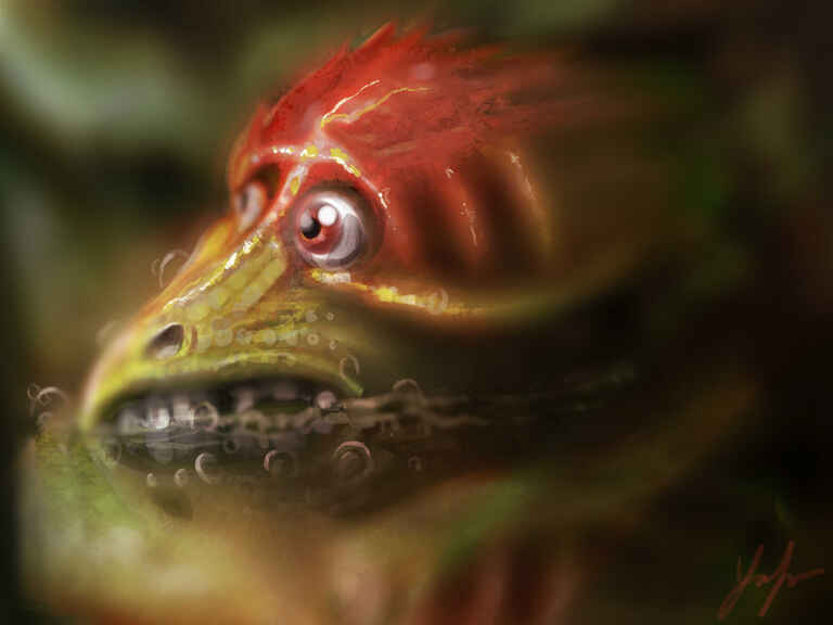I started this painting with a sketch based on the reference of an axolotl and then improvised.