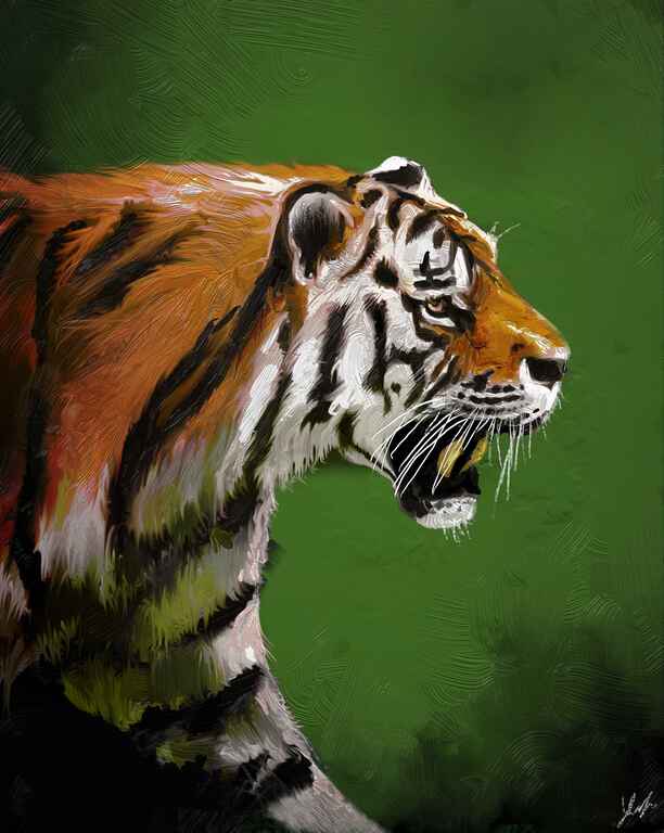 This was a painting that I did for my dad of his cat and the first painting I printed on canvas. I have learnt that the colours on a digital piece just need to be brightened before printing to get the best effect.