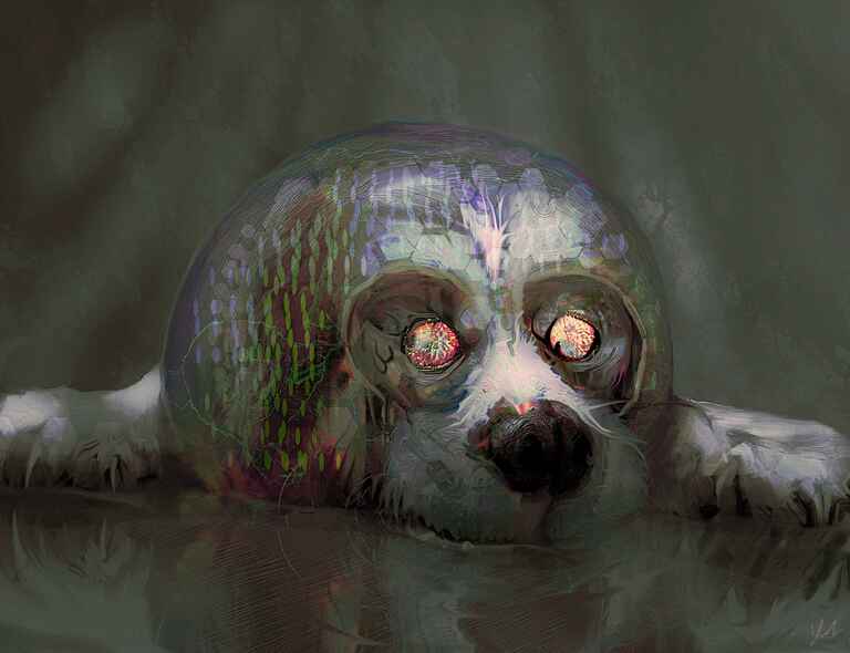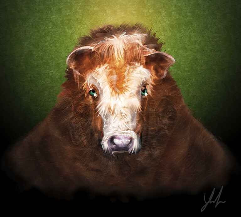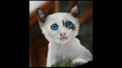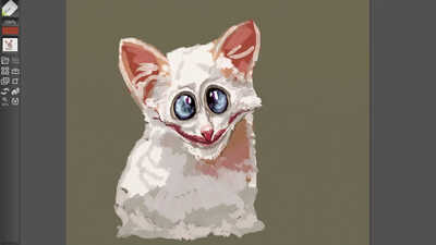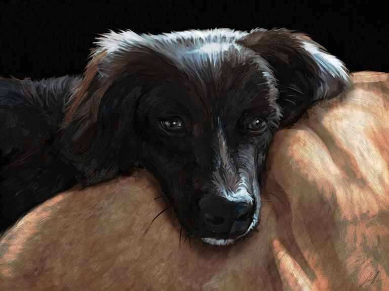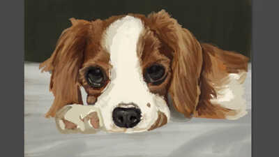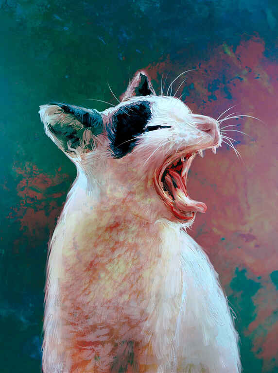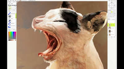 A pretty normal animal portrait using quite a thin type of oil brush and having lots of fun with the big dark cut eyes, for any portrait that is a very quick and easy win.