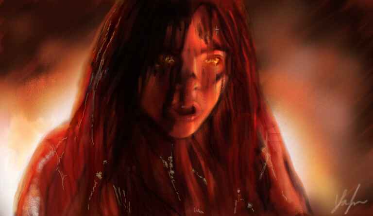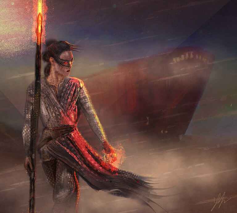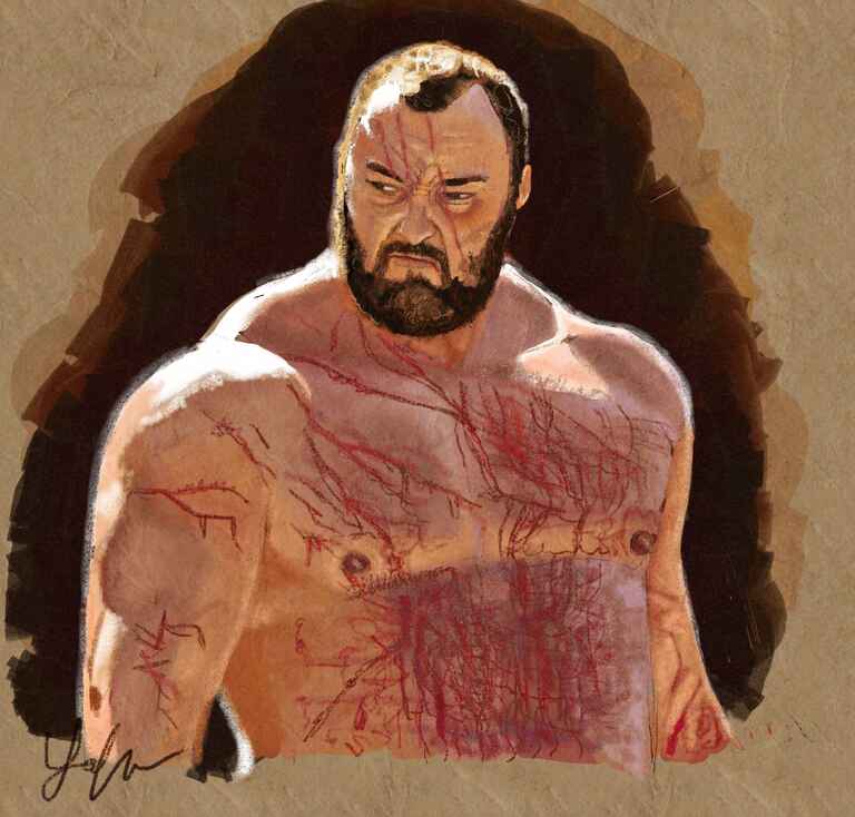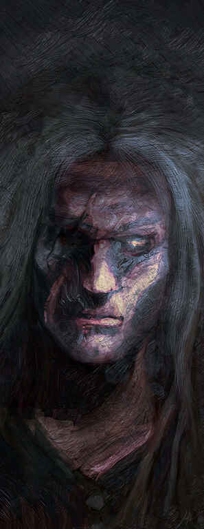 Mainly using the oil brush and the style of the reference and the fact that there was armour to render meant that the painting lent itself to little blending.