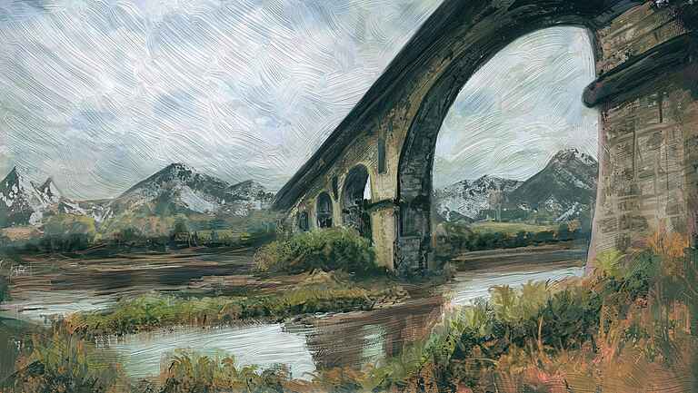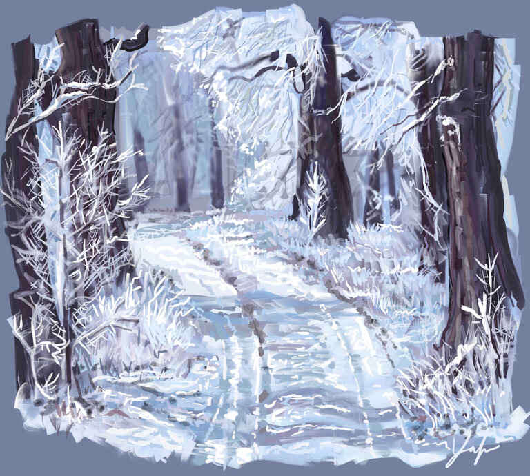 My idea here was to pretty much go for a Christmas card type feel so I thinned down the oil brush and focussed on simplifying the painting.
