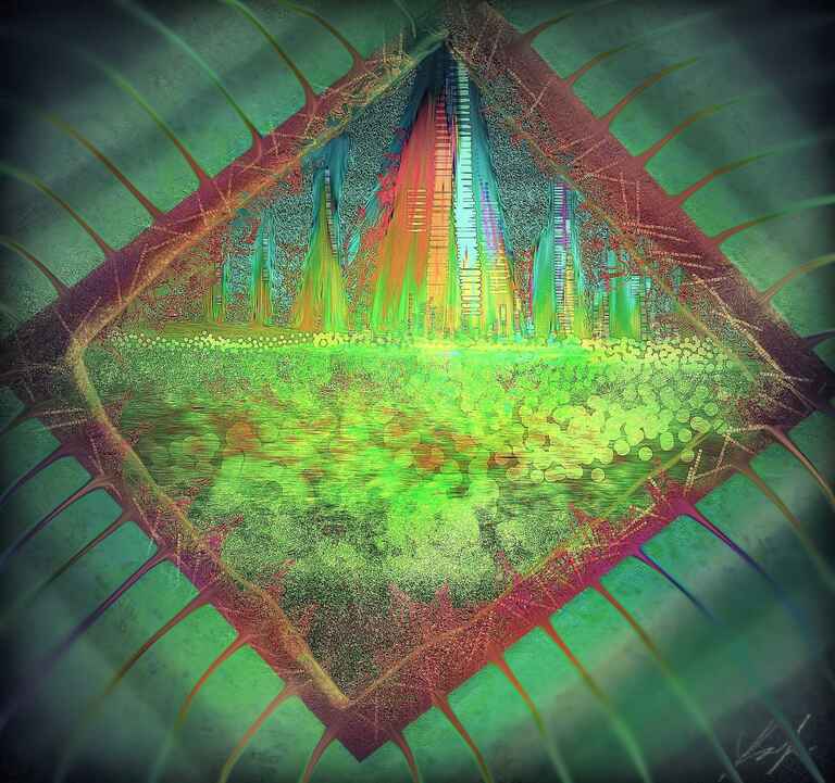 I had the idea of throwing lots of textures at this one to see what would happen. My first idea was to grunge up as much as possible the pastels but I needed to go further.