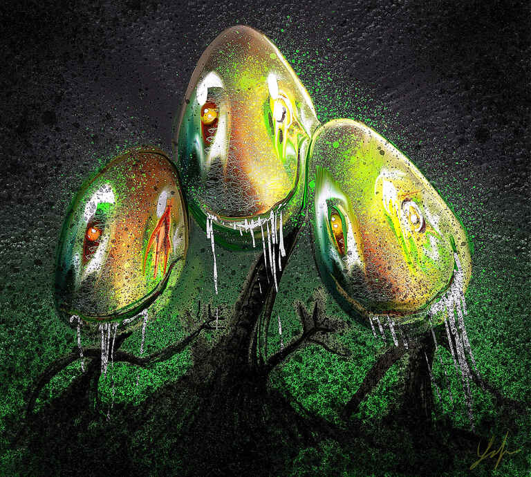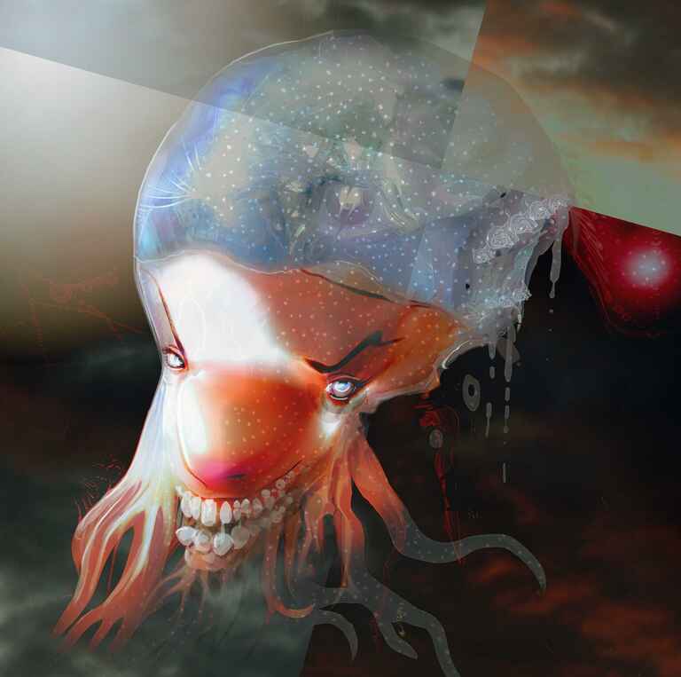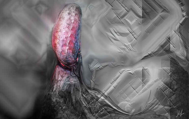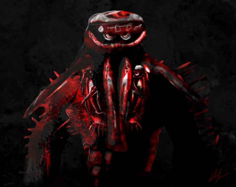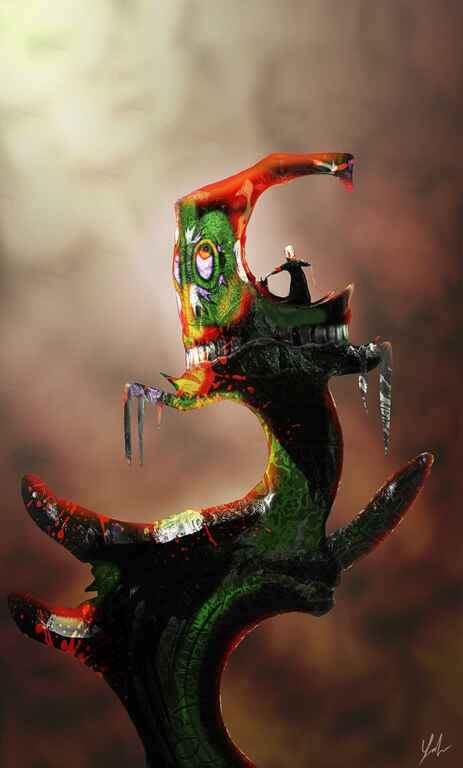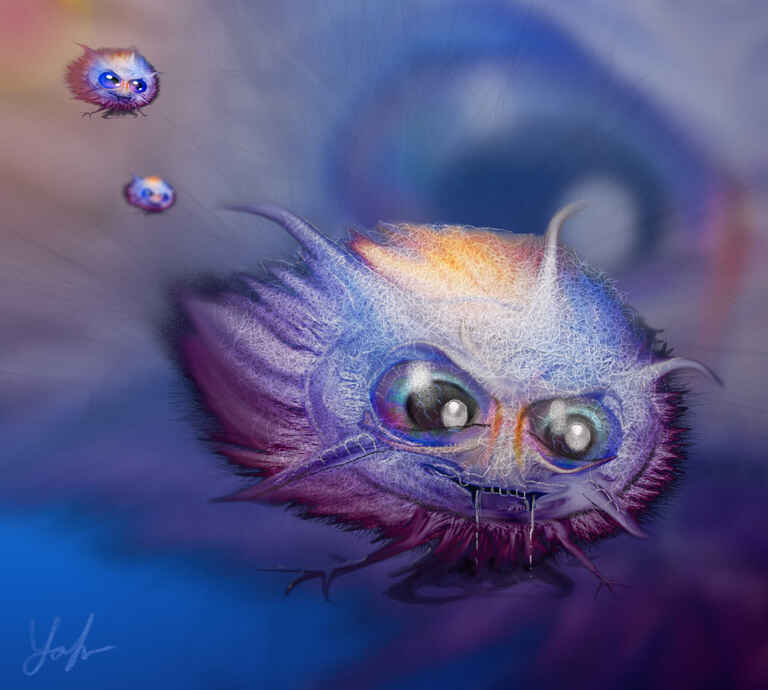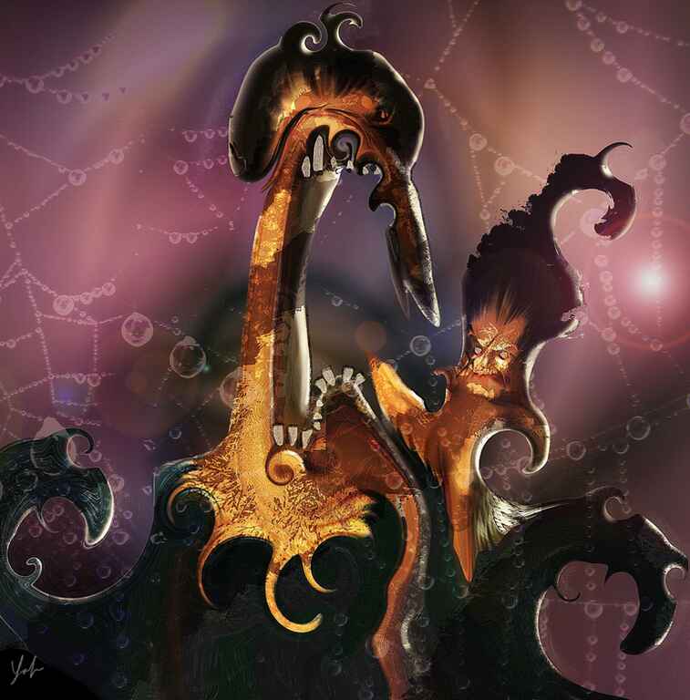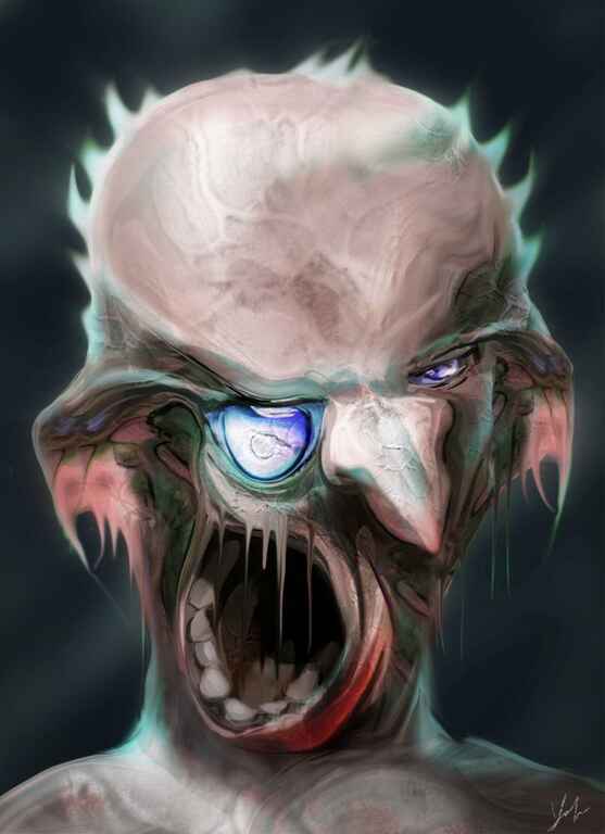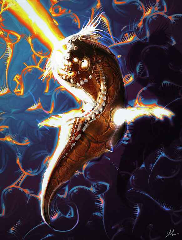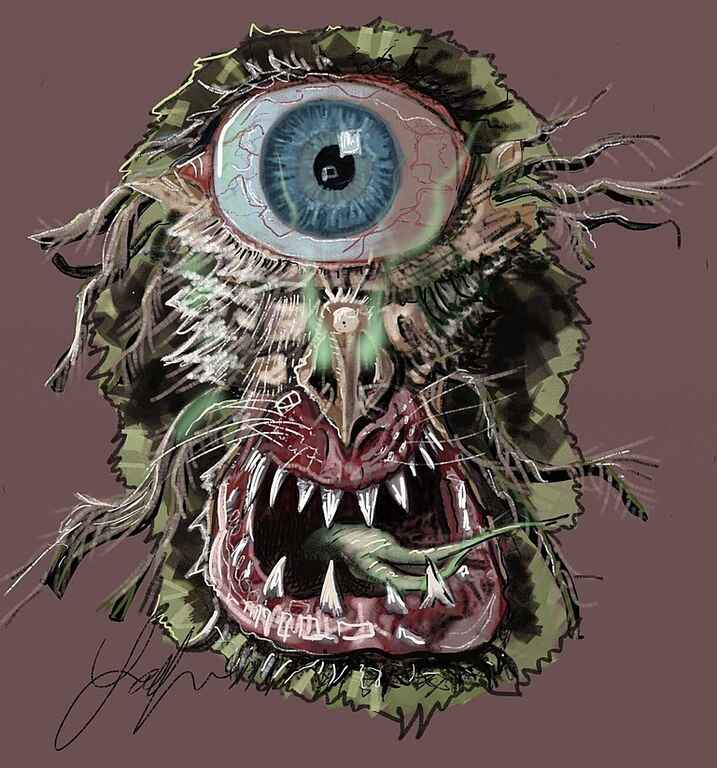 Me just having fun and making something up, but with using a reference of a great white shark to define the mouth and a separate reference for the eyeball.