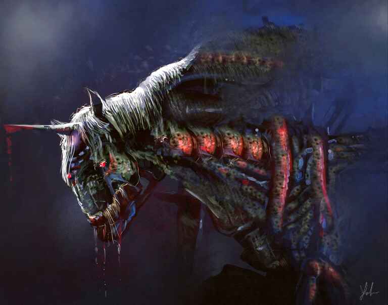 This came from a suggestion by a work colleague, of course I started with a horse reference, and then just added on the horn, I was going for a more pastel ethereal look.