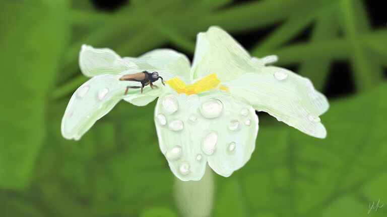 Unusually started with a sketch on a coloured background and then applied a marker for a clear set of colours. My idea was to clearly define a crisp well defined insect offset by a blurry background.