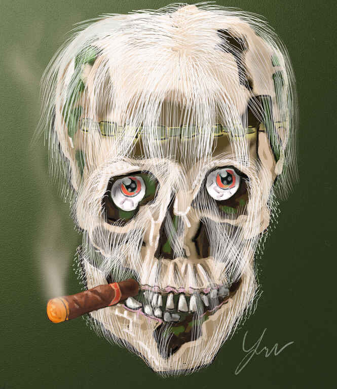 Using a reference of a skull and a cigar I produced this mash up. As you can see I made some good use of a hair brush.
