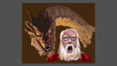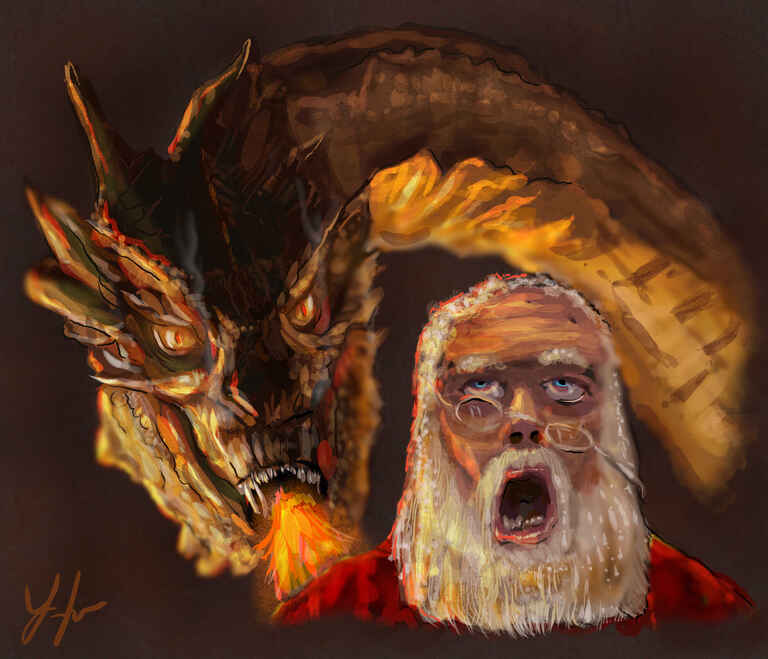 I thought I would have a bit of fun with this one, combining a Game Of Thrones type dragon. To get the Santa facial expression I actually took a picture of myself and worked off that reference.