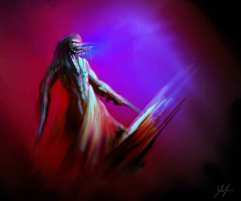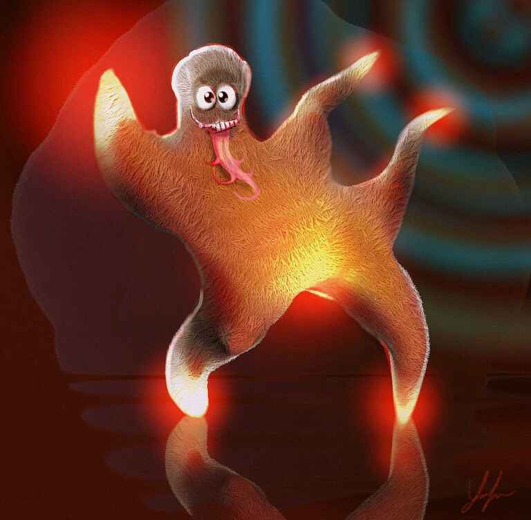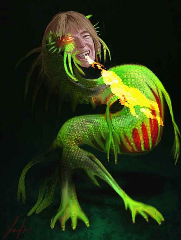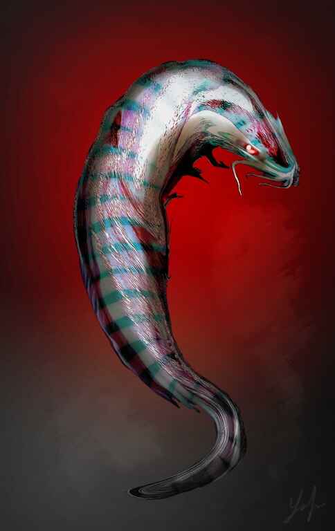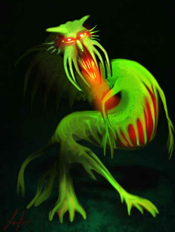 A falling creature which I call a Squirm, I felt that I am starting to get to grips with the lighting and applied a little more blending to this one.