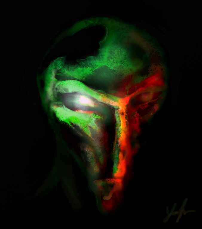 I was playing around with this painting at the start, I knew I wanted to start off with something cute, so I focussed on the eyes and then played around until I felt an idea coming through, a cool dude of an alien idea then started to form and I just went with it, very much focussing on an illustrative look again.