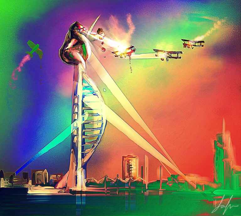 I thought I would have a bit of a go at animating my art using an app on IOS called Werble!, this time a weird floating burning pocket of destruction!!