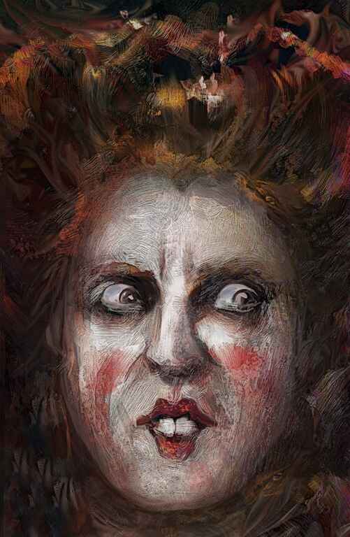 The first of the Sanderson sisters that I attempted, the final version here is a little different than my original idea when it came to typing all three of the sisters together, originally I had also cropped out the lower part of the chin (as an accident) and it seemed to work well, but eventually relented.