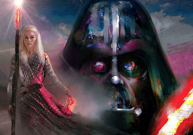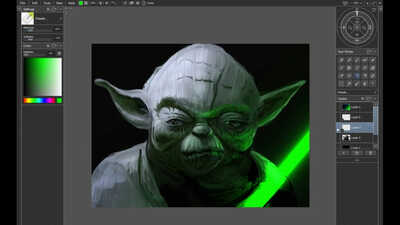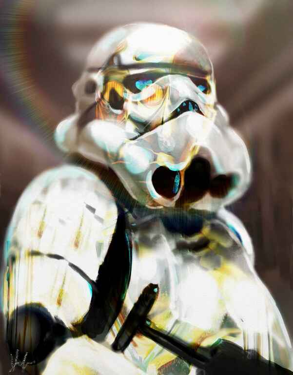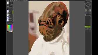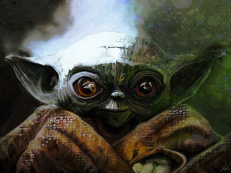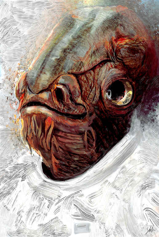 Started in Infinite Painter and I wanted to apply a lot of texture in ArtRage mainly utilising the depth of the Oil Brush to define Jabbas skin. I added a tongue from the original reference and subtly introduced Yoda and Luke into the background. The main enhancement from the reference was adding more of a spotlight on the face and enhancing the saturation.