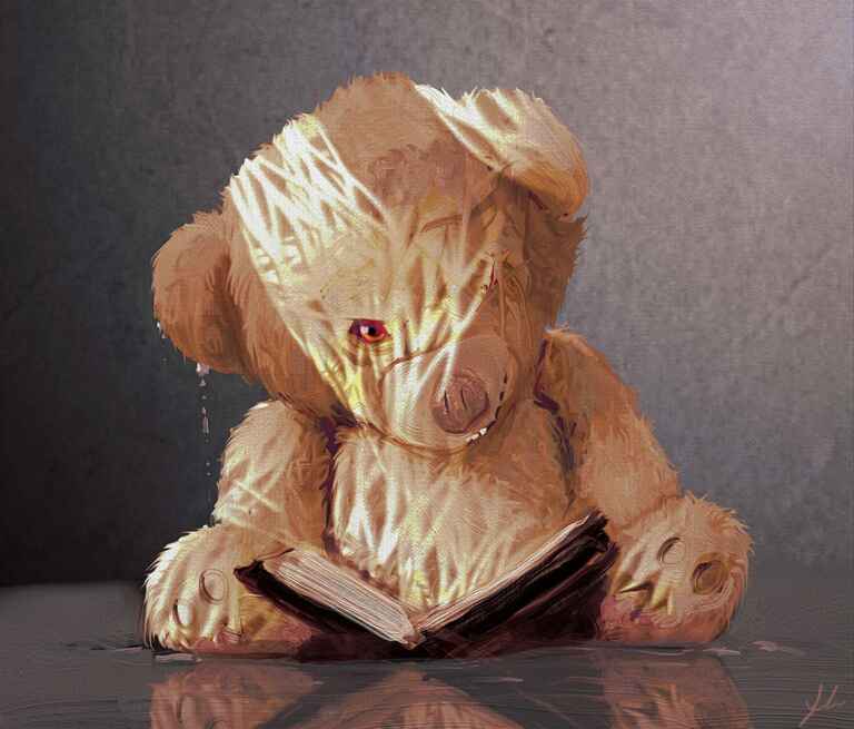I originally started this piece about a year ago and had it hanging around for while, when I revisited I replaced the original cat with a dog and added a teddy bear.
