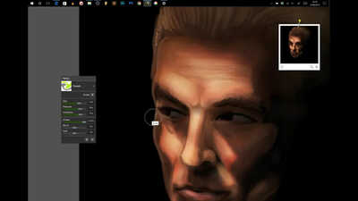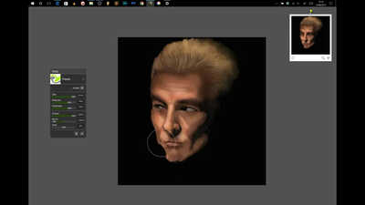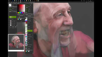 This was an unexpected win in that I blocked in a lot of the facial colours in a very rudimentary way with no blending and then used the palette knife wet option to blend everything in which as it turns out worked surprisingly well.